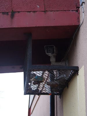 IMAGE THREE: The centre of any Scottish community is the communal CCTV camera. The simple natives venerate it as a kind of god and try to bestow offerings on it by chucking bottles and other interesting pieces of loose rubble into its "holy cage.”