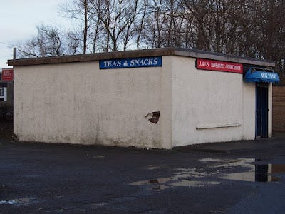 IMAGE ONE: A "wee shop": unable to afford the services of full-time security staff, the "wee shop" has evolved to resist the vandal hordes by having no windows or any portal through which urine or lighter fluid can be injected. The only way to destroy the Scottish "wee shop" is a direct hit by a nuclear missile.